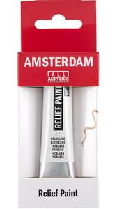 Amsterdam Relief Paint er en av de mest allsidige malingene i Amsterdam-sortiment. Den fester på både absorberende og ikke-absorberende, glatte overflater. Den presise dysen brukes til å lage hevede linjer med en levende 3D-effekt. Den kan også brukes til å legge til signaturen din og skape den perfekte finishen.
