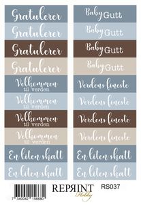 Ark med papir klistremerker fra Reprint, passer til Reprint serien - Happiness